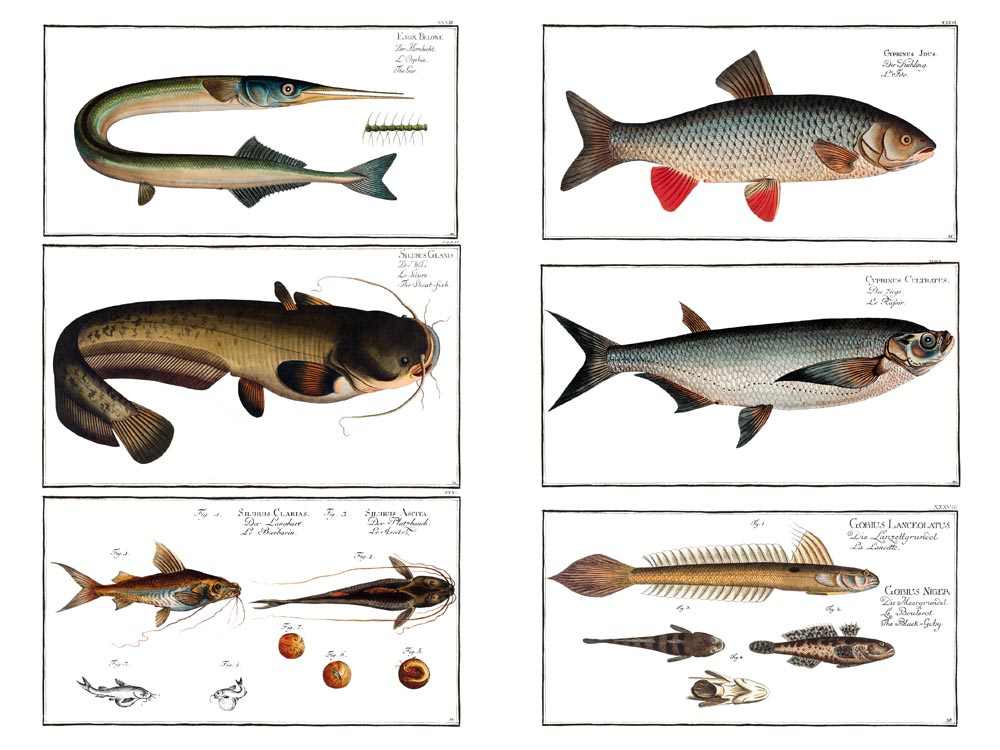 Un libro prezioso fatto del silenzio delle profondità. 416 specie di pesci divinamente illustrate dal più grande ittiologo del mondo. Bloch lavorò per tredici anni alla sua opera in dodici volumi volta a raccogliere tutte le varietà di pesci esistenti e in questo libro ne troviamo una parte considerevole. Le immagini sono ipnotiche e il loro realismo sconfina nel magico che queste creature marine trasmettono.