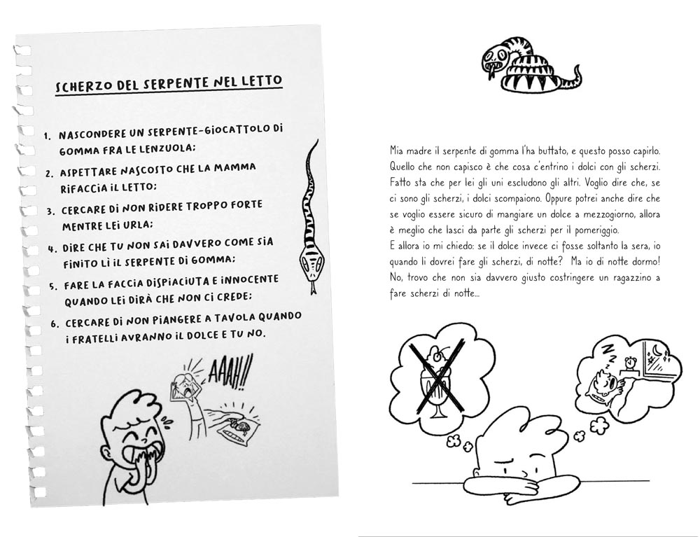 Un bambino scrive gli scherzi che progetta e realizza a tutti quelli che conosce: nessuno escluso.