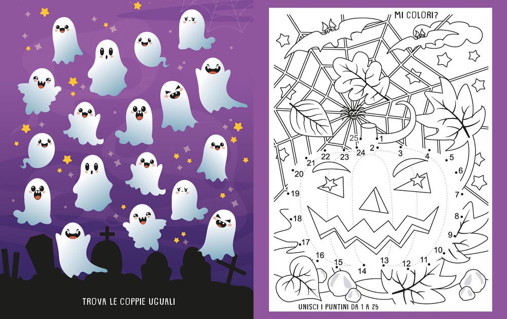 Pulce educational conta oltre 60 titoli, tutti sotto l’insegna dell’imparare divertendosi. Anche ad Halloween sarà un grande divertimento passare il tempo con giochi, passatempi, cerca trova, labirinti, unisci i puntini, trova le differenze e tutti quei giochi enigmistici intramontabili anche per le nuove generazioni. Un’ottima alternativa agli schermi!