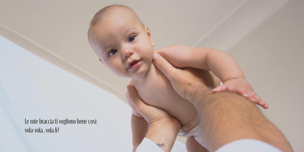 Corpi, parole, suoni, coccole, bocche, bacini, mani che si esplorano, si incontrano, si ritrovano, dando vita al naturale e spontaneo linguaggio tra piccini e genitori.